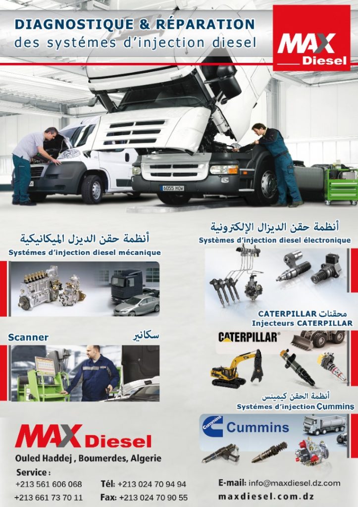 New Solution * * * * * * * * * MAX Diesel est une société Algérienne créé en 1998.* Plus de 20 ans d’expérience. Nous avons parmi les premières entreprises Algérienne à réparer une grande large gamme des systèmes d’injection pour tous types des véhicules léger et lourd et …